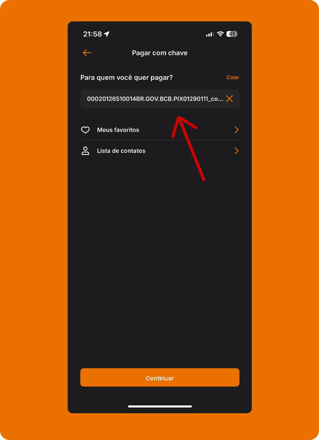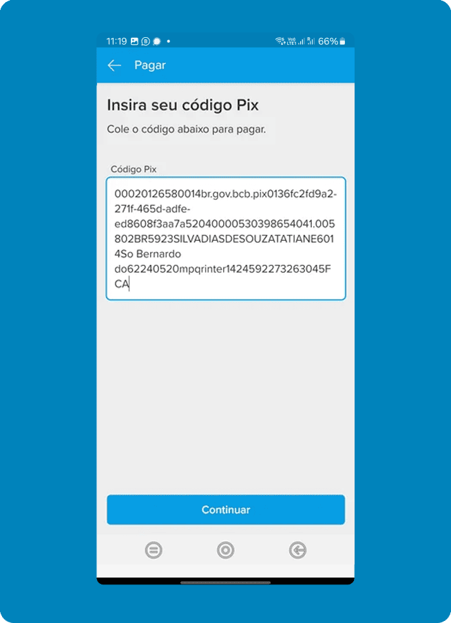 Cole o "Código PIX" e clique no "Botão de Seta" para avançar.