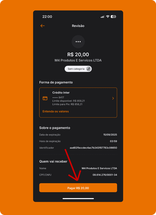 Abra seu aplicativo do Inter e selecione a opção "PIX no Crédito".